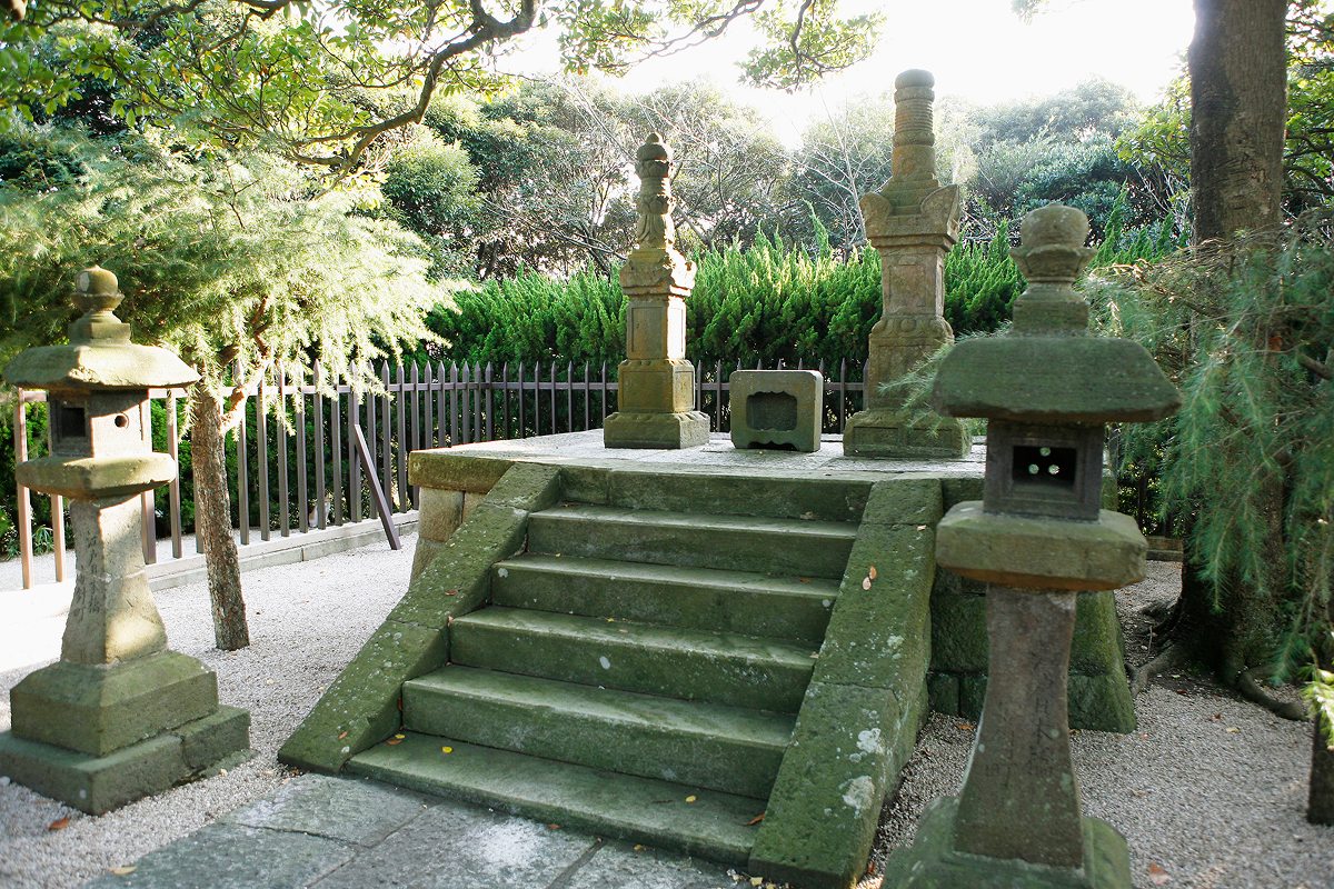Anjinzuka is located at the highest point of Tsukayama Park, a famous cherry blossom site. It is the collective name for the graves of Miura Anjin and his wife and is designated as a National Historic Site under the name “Grave of Miura Anjin.” According to tradition, Anjin requested to be buried in a high place overlooking Edo so that he could continue to protect the shogunate after death. The tomb is built in the hōkyōintō style, used for revered figures, and is flanked by stone lanterns donated from Nihonbashi Anjin-cho.